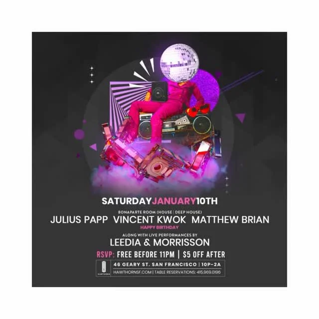San Francisco, CA. - Saturday, January 10th - Hawthorn, SF...